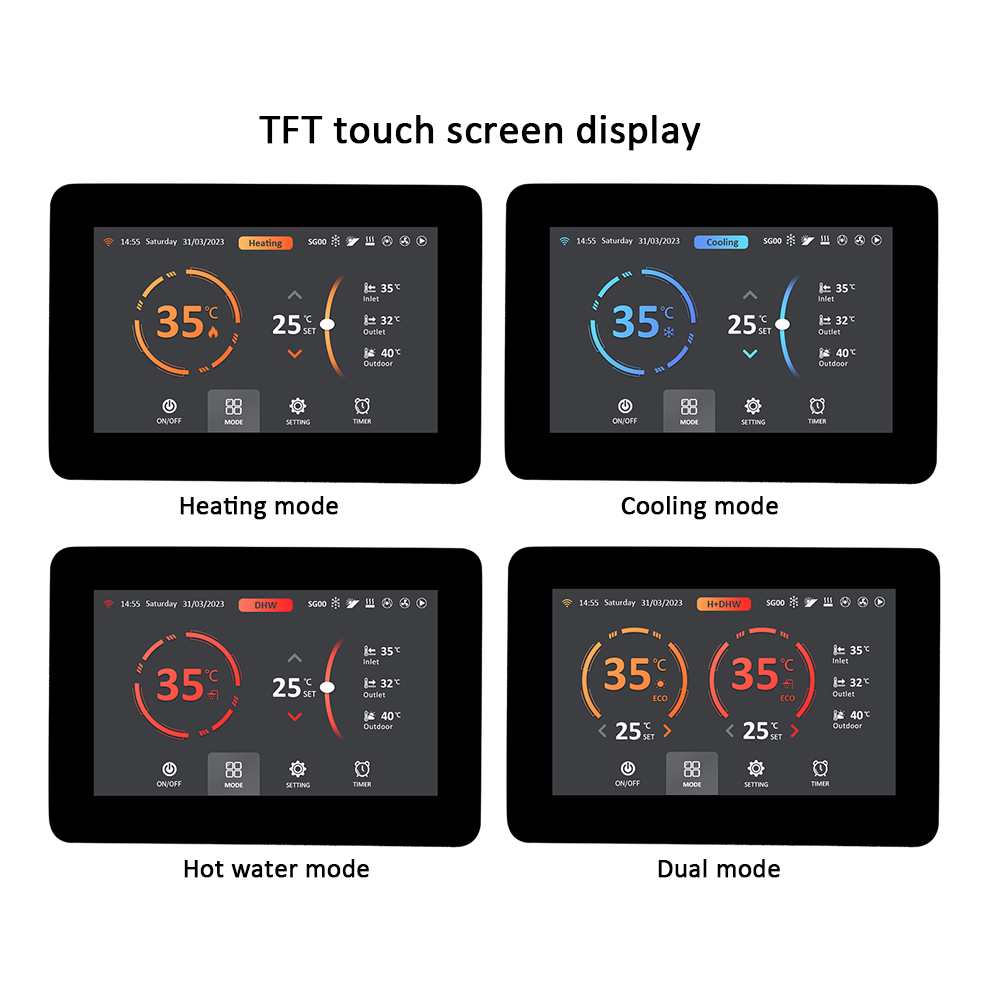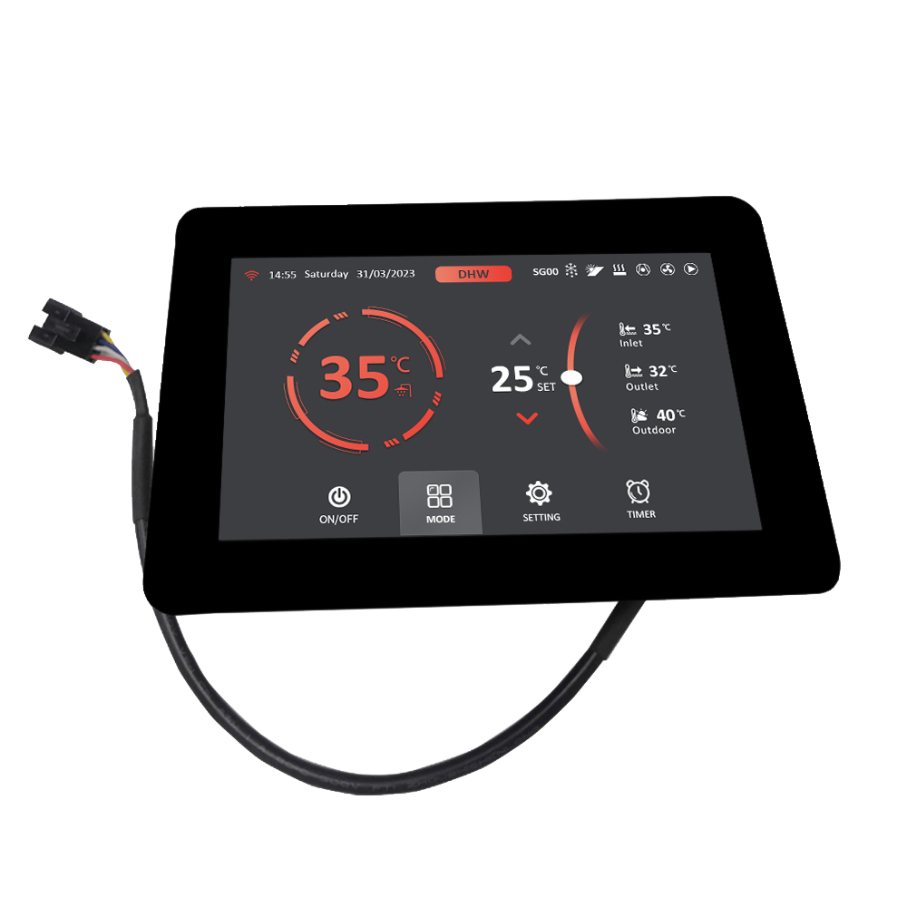5寸TFT彩屏觸摸線控主要適配于工程、泳池類熱泵控制器,通過(guò)了EMC標(biāo)準(zhǔn)測(cè)試,是暖通熱泵市場(chǎng)配件倍受青睞,特別適用于做出口的熱泵廠家。